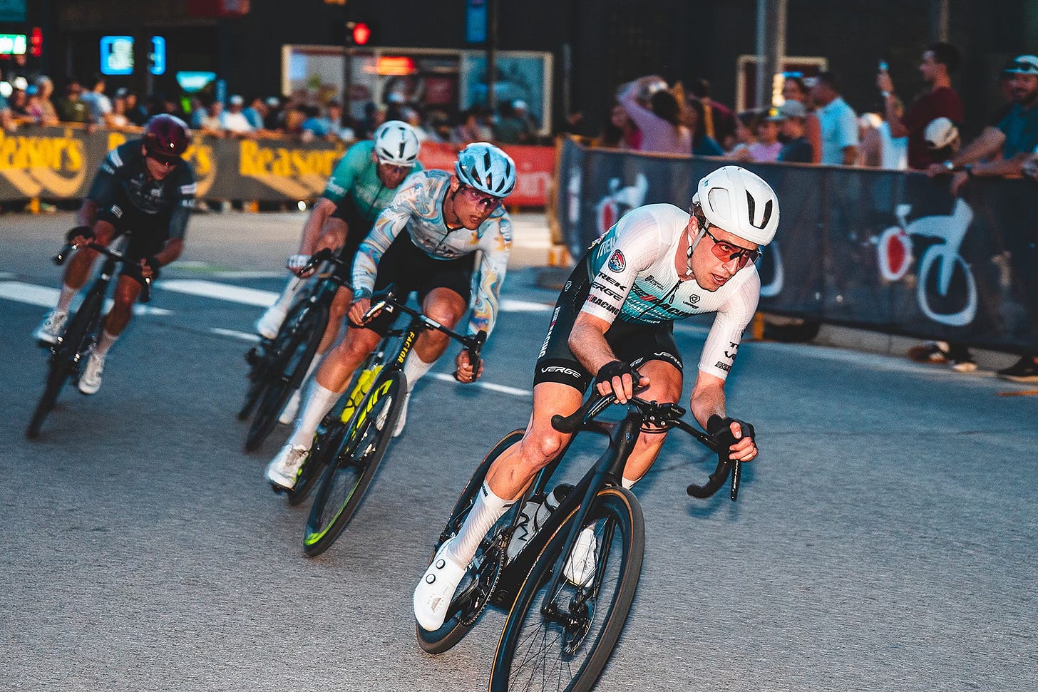 I think what makes Tulsa special among all of the races on the calendar is not that it can be likened to the “Super Bowl,” but that it is a glimpse into what could be in America. Tulsa is the closest we have (in men’s racing) to legitimate professional criterium racing. My best guess is that, that feeling comes from the fact that Tulsa features both a P/1 and 1/2 race for the men, which permits local and aspiring riders to self-select away from the “elite-er” race which helps raise the parity of the P/1 field to just those at the tip top end. It also draws a deeper contingent of international and UCI riders than other races. And to top it off the live stream, first it exists, and then also it is of legitimate broadcast quality making it feel like a truly professional experience.