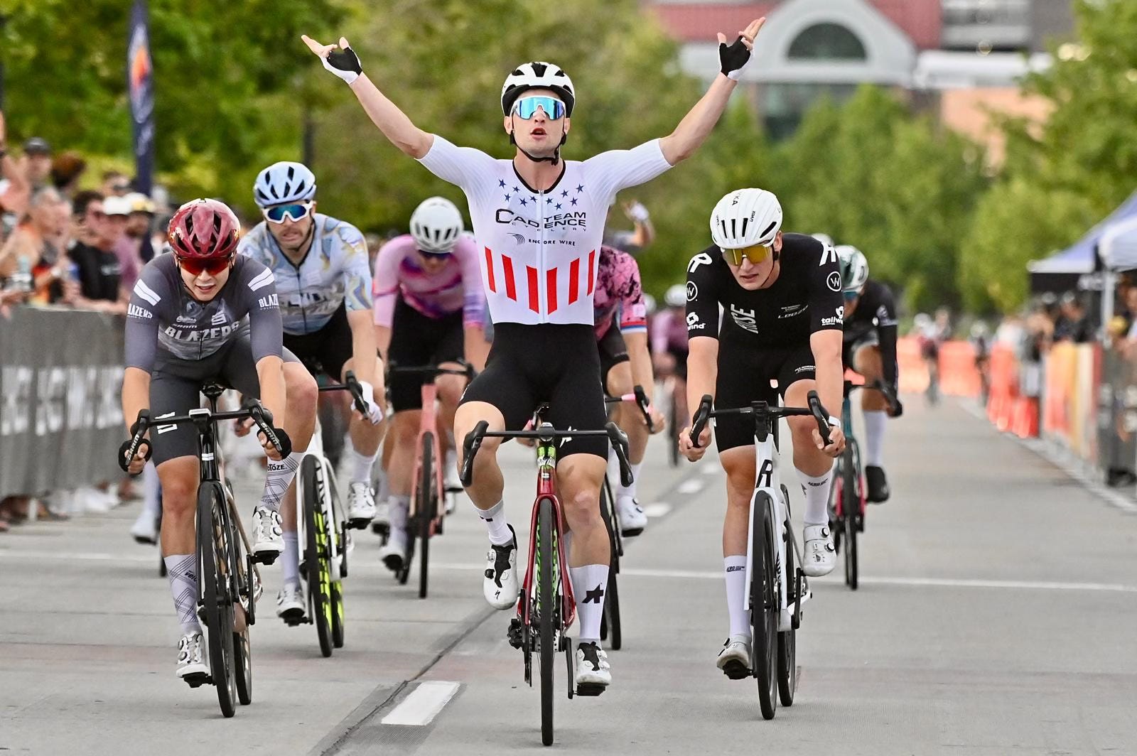 The men’s race flipped the script with a lot of aggressive racing early as the team-less riders tried to forge clear. One team that was especially active was Cadence Cyclery, which was curious given that it was the team of Lucas Bourgoyne — perhaps the fastest sprinter in the field. Yet, as Bourgoyne raised his hands across the line, it was clear there was a method to the strategy.